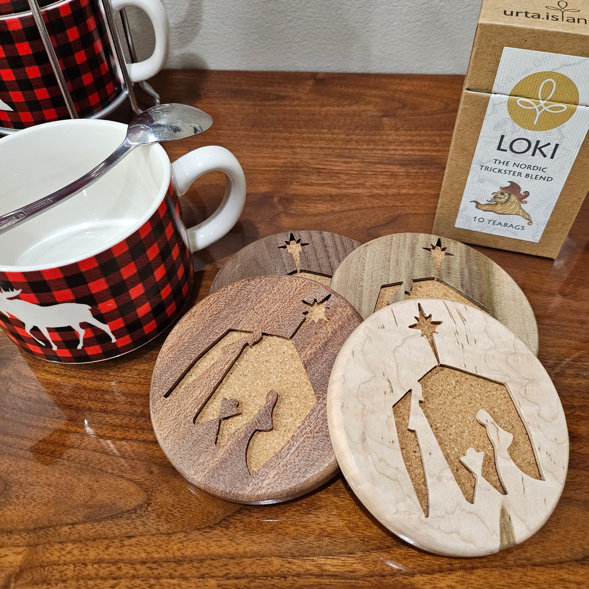 Choose Your Holiday Symbol: Each set comes with a choice of one iconic Christmas design - a classic Christmas Tree or a serene Nativity Scene. These designs are thoughtfully carved to capture the essence of the holiday spirit, making every sip of your festive beverage more joyful.