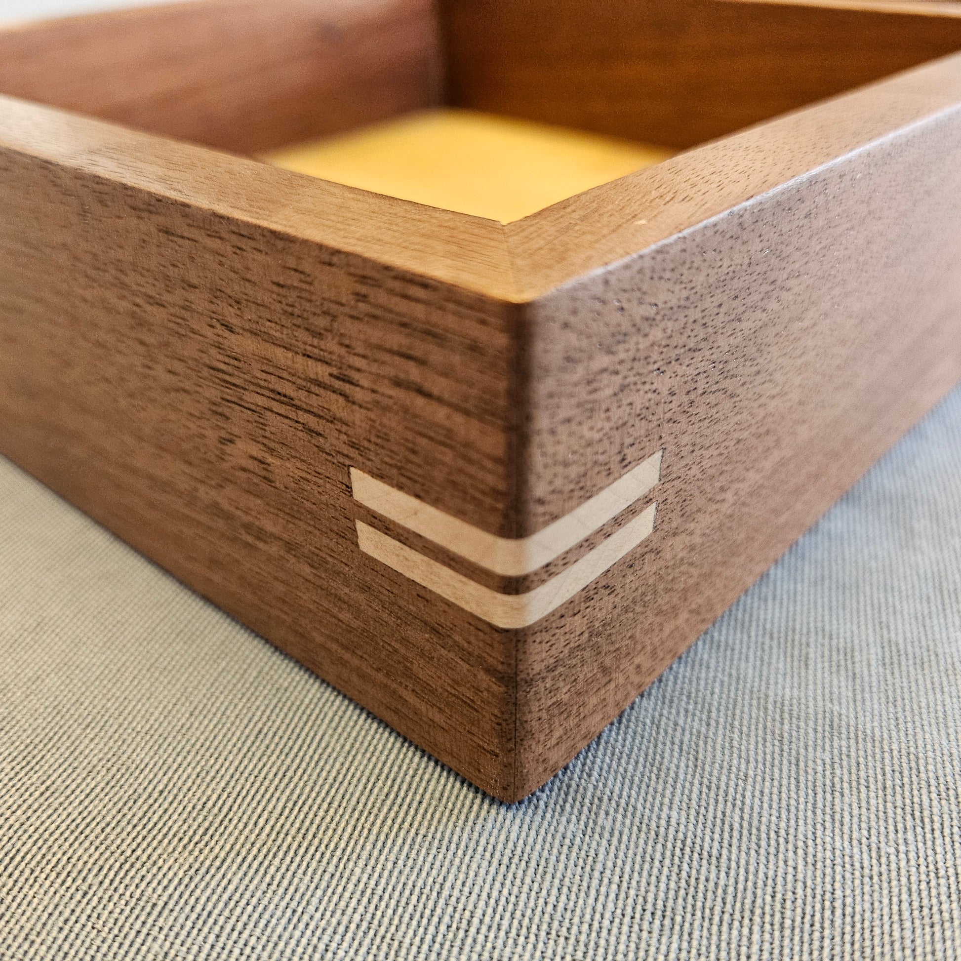 Artisanal Craftsmanship and Durability: The wood frame of the tray showcases the natural beauty of the wood grain, meticulously constructed to wrap around the corners seamlessly. Reinforced with splines – one on the first player's side and two on the second player's side – these trays are not only visually stunning but also built to endure the heat of battle.
