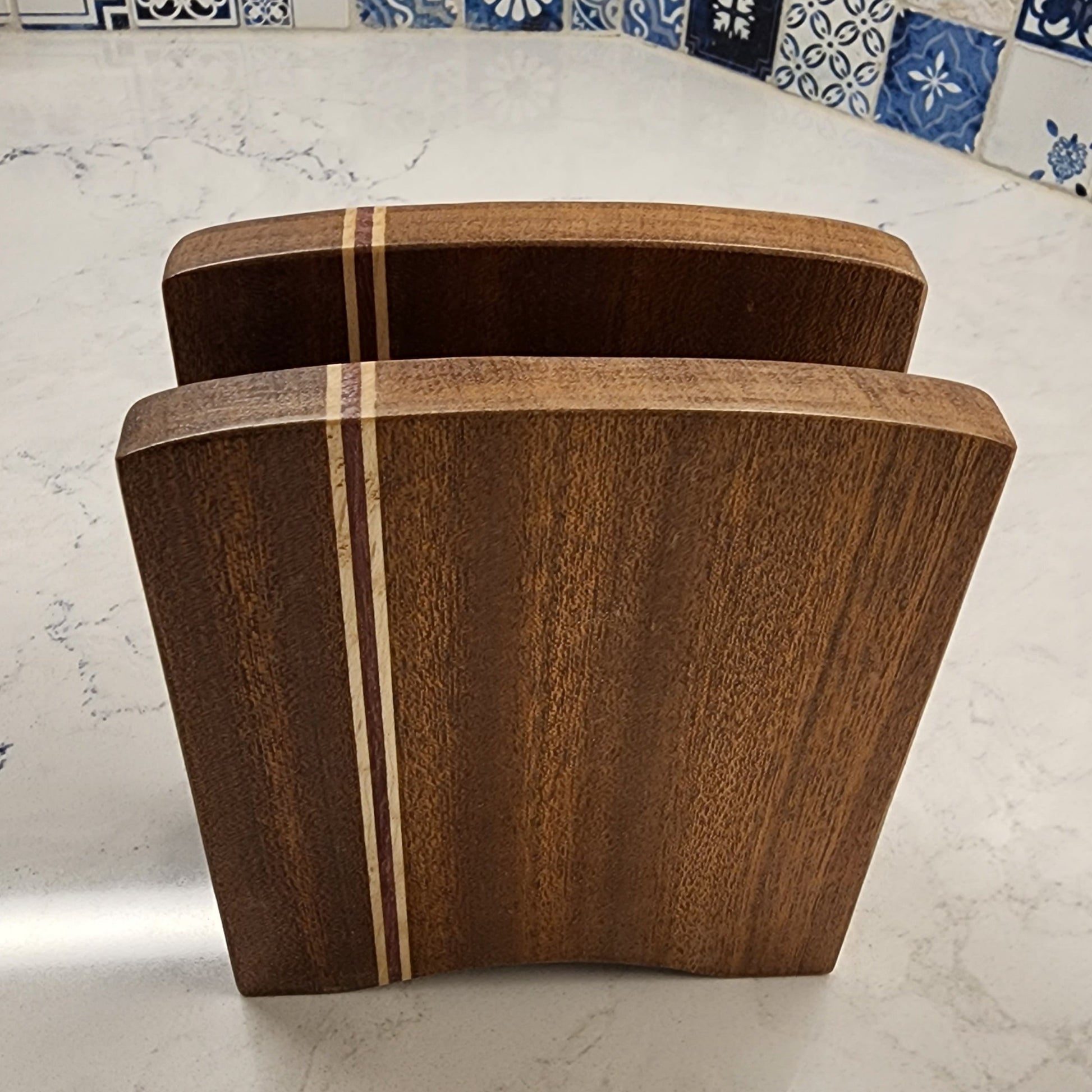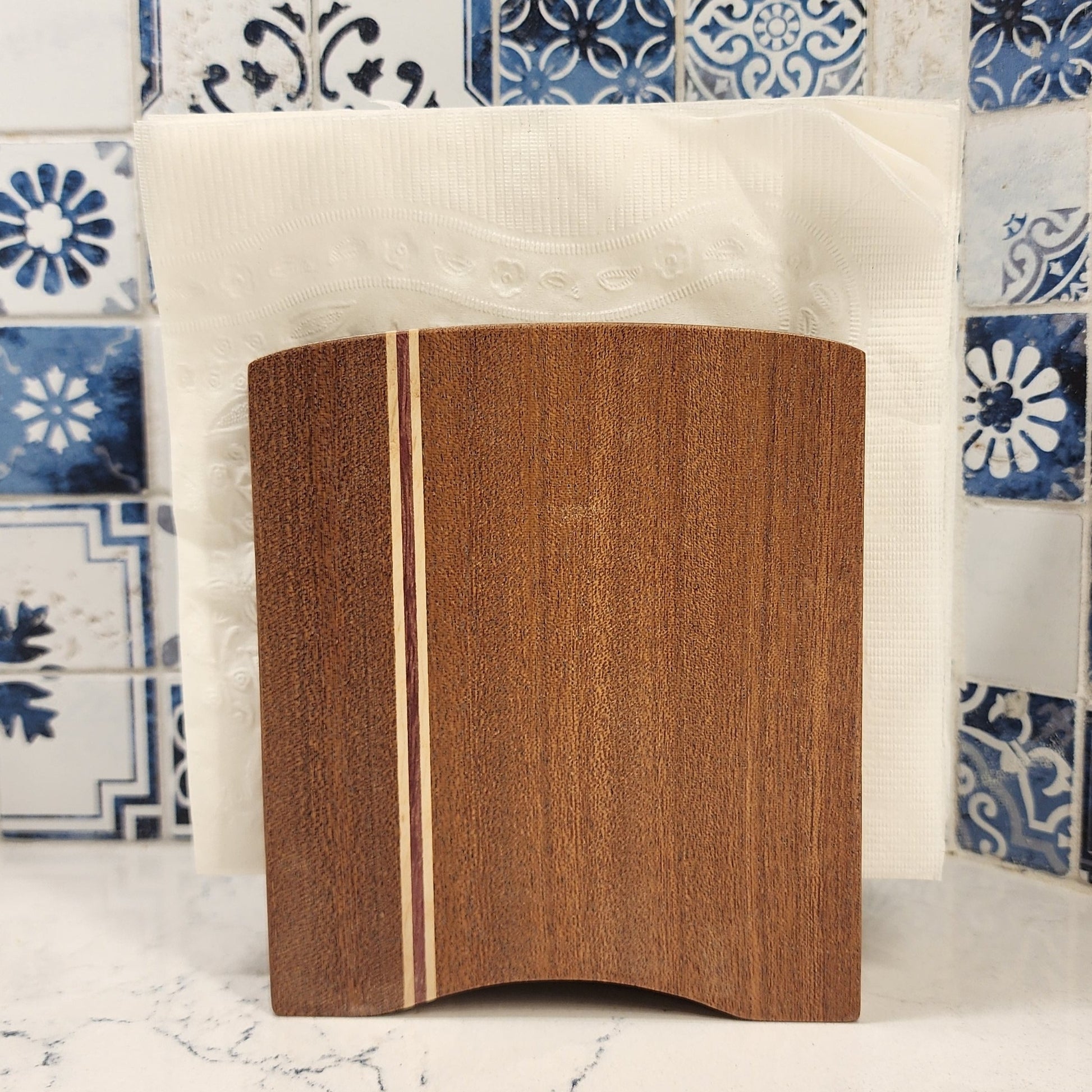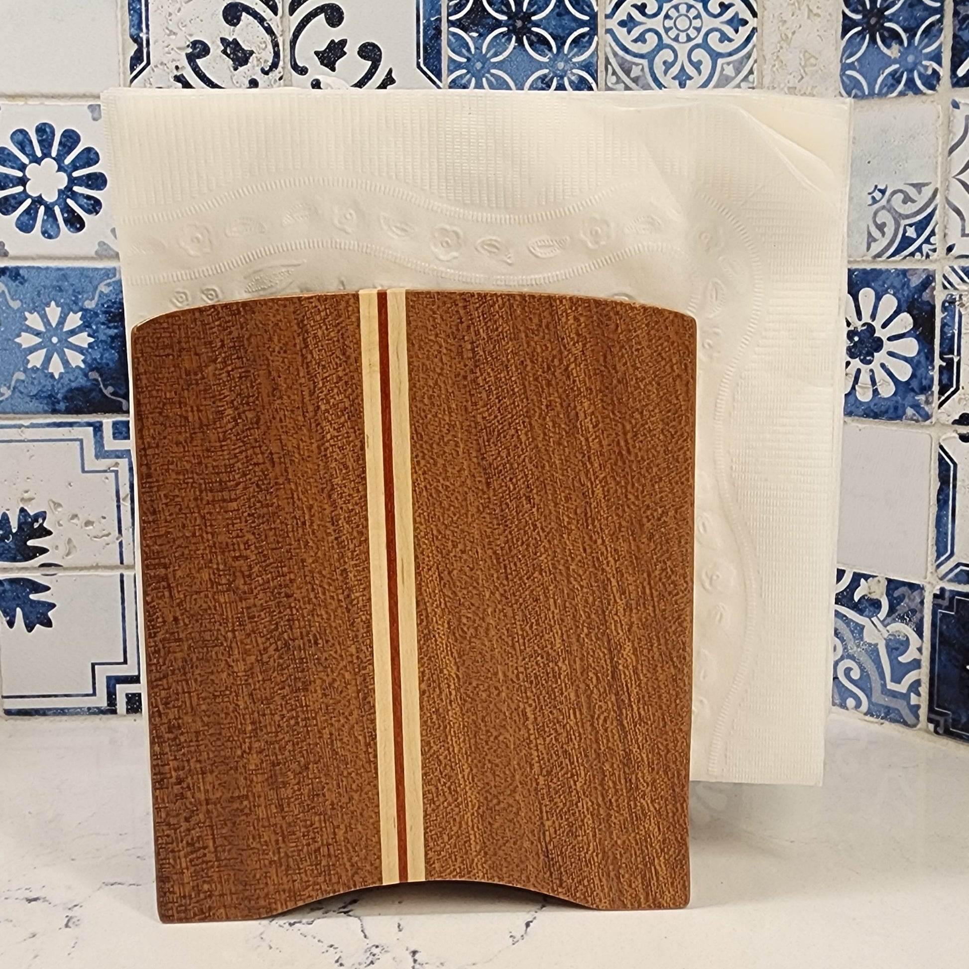 A while back the plastic napkin holder we had used for a number of year bit the dust and we decided to find something better to replace it. Well we hit the jackpot with this beautiful hardwood replacement which is not only functional but beautiful besides. The craftmanship is amazing multi-colored wood very ascetically pleasing.